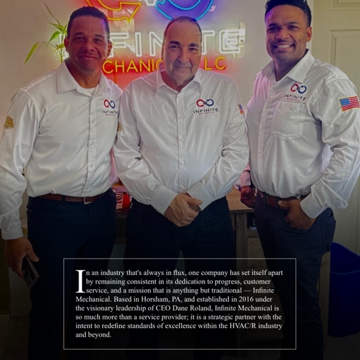 Infinite Mechanical is a locally-owned and driven HVAC company servicing Norristown as well as Montgomery, Chester, Bucks, Delaware, and New Castle Counties. Managed by Dane Roland, our company takes pride in setting the highest standards, especially regarding integrity and honest pricing. We offer a full variety of HVAC services to serve your needs better than anyone else.